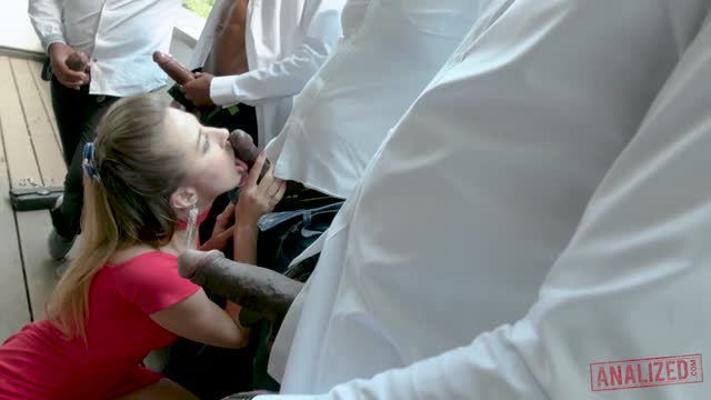 Tiny Amber deepthroats 10 inches of black cock, Rough ANAL sex and bondage, brutal orgasms!